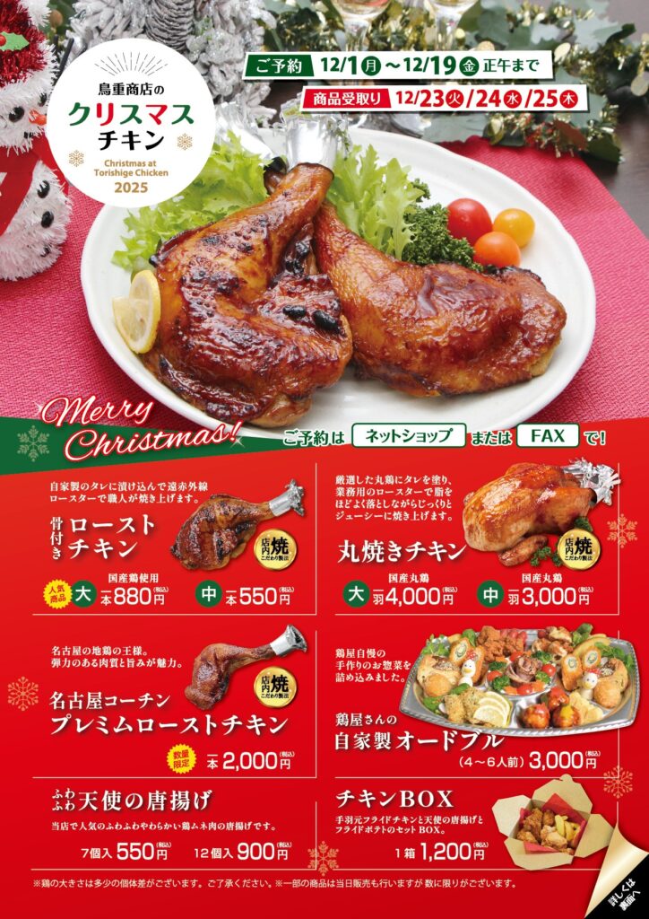 本日より、毎年ご好評をいただいているクリスマスチキンとオードブルのご予約を開始いたしました。